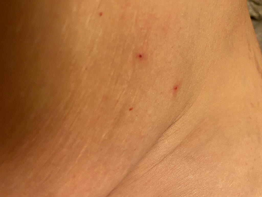 Severe itching between little toes after stepping on a slug.